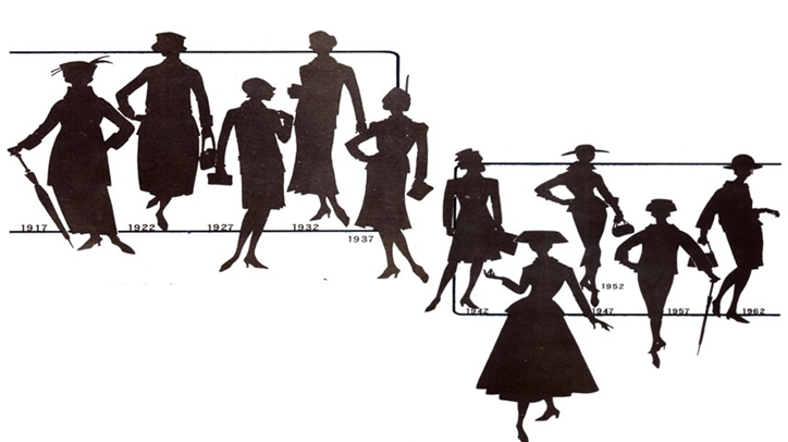服装界更多使用后者。服装的廓形是服装款式造型的第一要素。克莉斯汀·迪奥曾在50年代推出一系列字母造型时装,分别用A、H、Y等英文大写字母来比拟他作品的廓形。服装廓型是指服装正面或侧面的外观轮廓。