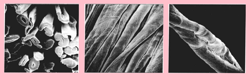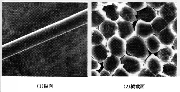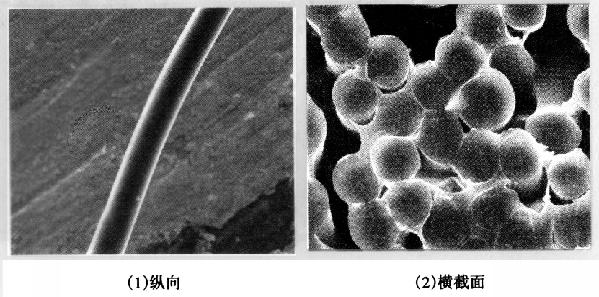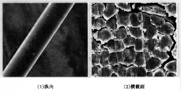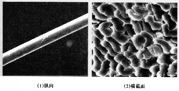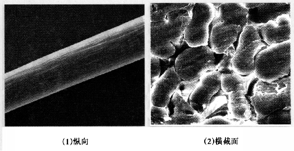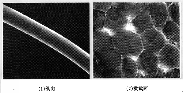图2-4 蚕丝纤维的纵向、横截面形态