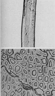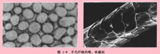 图2-3 毛纤维的纵向、横截面形态