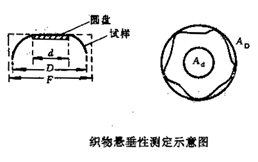 将一定面积的圆形试样同心地放在一直径为d的小圆盘上,织物因自重沿小圆盘周围下垂、经过一段时间后,将呈现为均匀折叠的波状。然后用小圆盆上方的平行光线照在试样儿,可得到试佯的水平投影面积,从而求出织物的悬垂系数和悬垂性。
