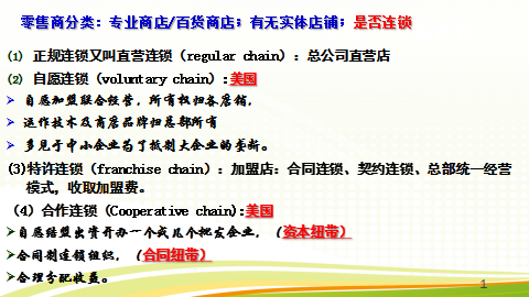 按是否连锁划分:可分为连锁零售商和非连锁零售商。连锁零售商也指连锁商店。