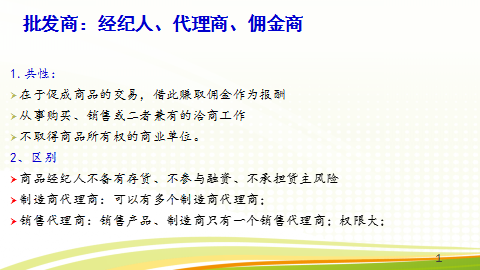 批发商分类:有三种类型,即商人批发商、经纪人和代理商、制造商的销售机构。