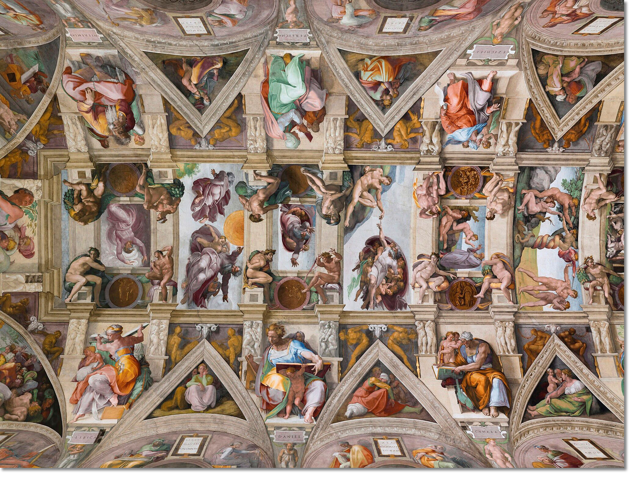 米开朗基罗:(意大利语:Michelangelo(意大利语发音:[mikeˈlandʒelo]),1475年3月6日-1564年2月18日),全名米开朗基罗·迪·洛多维科·博那罗蒂·西蒙尼(Michelangelodi Lodovico Buonarroti Simoni),又译“米高安哲罗”、“米开兰基罗”、“米高安哲奴”、“米开朗琪罗”。米开朗基罗是文艺复兴时期杰出的雕塑家、建筑师、画家和诗人,与列奥纳多·达芬奇和拉斐尔并称“文艺复兴艺术三杰”,以人物“健美”著称,即使女性的身体也描画的肌肉健壮。他的雕刻作品“大卫像”举世闻名,美第奇墓前的“昼”、“夜”、“晨”、“昏”四座雕像构思新奇,此外著名的雕塑作品还有“摩西像”、“大奴隶”等。他最著名的绘画作品是梵蒂冈西斯廷礼拜堂的《创世纪》天顶画和壁画《最后的审判》。