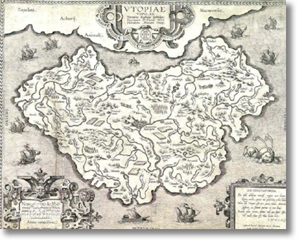 乌托邦在希腊语中的读音在“没有的地方”和“好地方”间含糊不清:乌托邦是由音节ou-(意为“不”)和topos(意为“地方”)而组成的复合词,但是他又与由同音前缀eu-(意为“好”)组成的词同音。这样其实也是在暗示:“没有地方”是真正“完美的地方”。