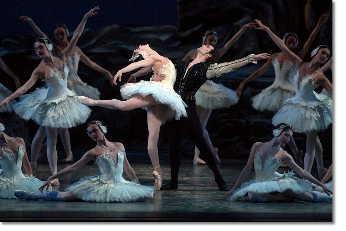 在古典芭蕾舞剧中,通常以慢舞来表现男女的情爱场面,如《天鹅湖》中的第二幕公主与王子的双人慢舞。慢舞基本上是属于女性的舞蹈,而男舞者只是支扶女舞者的陪衬而已,对于女舞者来说,无非是一个呈现其舞艺与优美曲线的大好机会,而此时表现身体的平衡更显得格外重要。