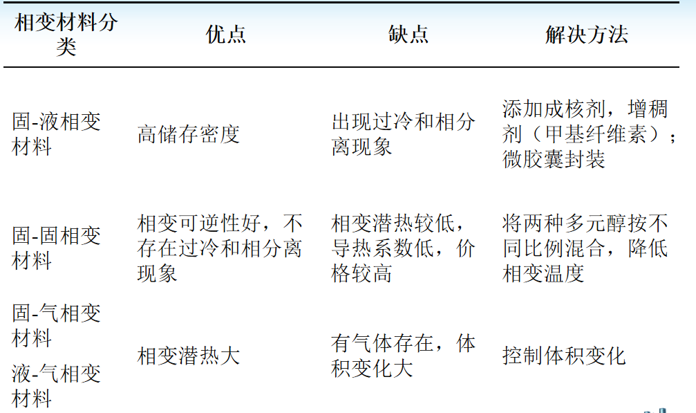 (3)相变储能技术的特点