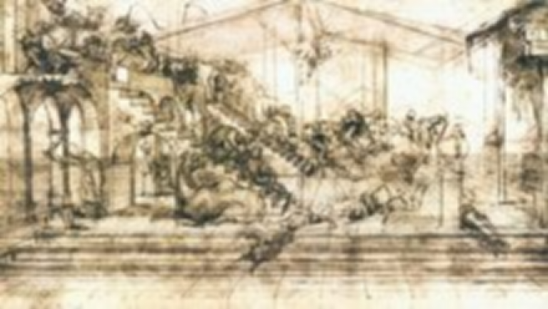 1481年创作的《三博士朝圣》是达·芬奇艺术风格达到成熟期的标志性作品。该画虽由于他动身去米兰而没有完成,但从原稿上可看出其构图和形象塑造所显示的艺术创新,大大超越了他的老师和同辈:由圣母婴孩和三位博士所形成的三角形稳定构图,按精确的透视法画的建筑遗迹和奔腾飞跃的马群等背景,说明他已不再从叙事的角度简单地罗列有关人物,而是对传统的题材进行彻底的改造。他所采用的色调幽暗的画法,使人物形象从阴影中突出,突破了传统绘画明晰透露的特点,预示着文艺复兴的到来。