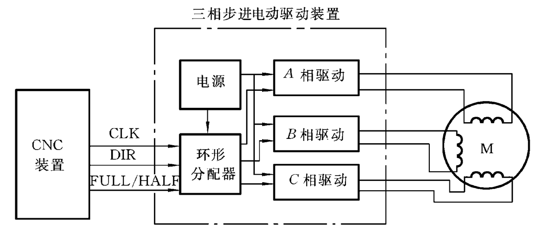 驱动控制器由环形脉冲分配器和功率放大器组成。