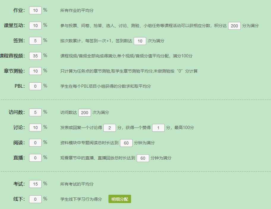 2. 章节任务中的章节测验“取历史最高成绩计分”、“及格后允许重做3次”;