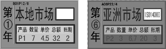 订单卡片用于模拟企业的市场,包括本地市场、区域市场、国内市场、国际市场等,卡片上有各个市场对所需求产品的量化数据。沙盘活动中要准备6~8年不同细分市场的所有订单,如图4-2所示。
