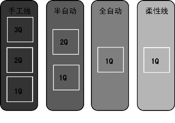 | 生产线 | 手工 | 半自动 | 全自动 | 柔性 |