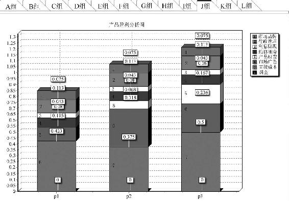 按照这样的计算方法得出各类产品的分摊费用,根据盈利分析公式,计算出各类产品的盈利情况,通过产品盈利分析图,可以直观地看出哪种产品是赚钱的,哪种产品是亏损的,其产品各项费用的比例是多少,如图9-7表示。