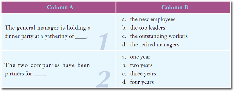 8. Listen to the short speech again and match the information in Column A with the choices in Column B.