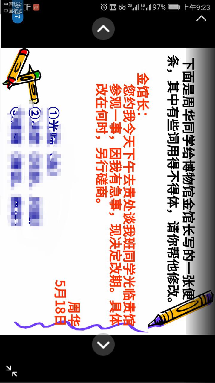 三、今天,张扬本来准备去拜访老师王林,并把一个月前借老师的书还了。但因疫情管控,现无法出入王老师家小区,所以他只好把书放到传达室,并给王老师写了一则留言条,同时感谢王老师,也表达自己的问候。