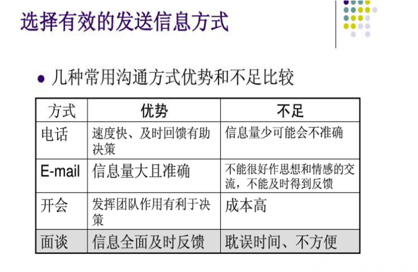 成功的沟通主要体现在能够达成共识,从而解决问题。我认为沟通是双方互动的行为,是相互了解,相互回应,并且能经由沟通的行为来达成共识,这是沟通的最终目的。怎样达成共识,在沟通时要注意三点:(发送)表达、(接收)倾听、反馈。