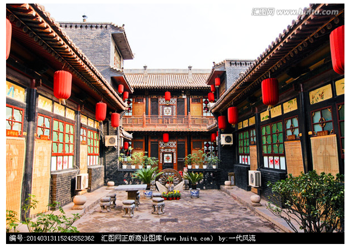 山西民居首先外墙高,从宅院外面看,砖砌的不开窗的实墙有4、5米层楼那么高,有很强的防御性。楼高院深,墙厚基宽,这是由于古代战事频繁,商人的防御性心理。春东季风沙大,西北风又较强;其次房屋都是单坡顶,无论是正房、楼房还是平房,双坡顶都不多。由于都是单坡顶,外墙又高又大,雨水都向院子里流,也就是“肥水不外流”。然后院落多为东西窄、南北长的纵长方形,不像北京的四合院正放开,院门多开在东南角。