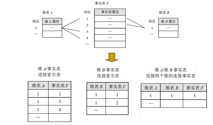 所谓连接索引,就是将事实表和维表中的索引项进行连接运算,然后将结果作为索引保留。