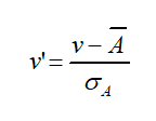 对给定的数值属性A, 、σA分别为A的平均值、标准差,零-均值规格化根据下式将A的值v规格化为值v':