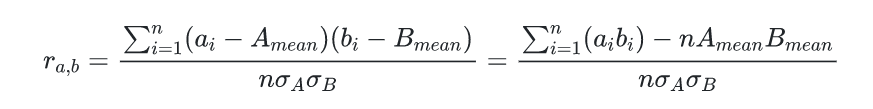 有些冗余可以采用相关分析检测。例如,给定A、B两个属性,根据对应的数据可以分析出一个属性能够多大程度上蕴涌另一个属性,属性A、B之间的相关性可用下式度量: