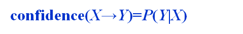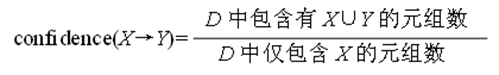 置信度确定通过规则进行推理具有的可靠性。对于规则X→Y,置信度越高,Y在包含X的事务中出现的可能性越大。