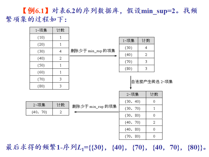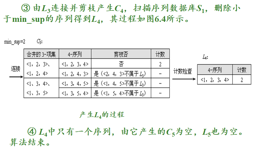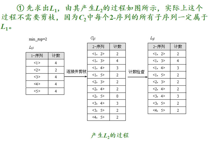 AprioriAll本质上是Apriori思想的扩张,只是在产生候选序列和频繁序列方面考虑序列元素有序的特点,将项集的处理改为序列的处理。