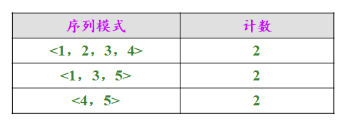 到此,L中已没有可以再删除的子序列了,得到的序列模式如下表所示。