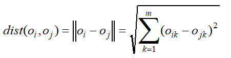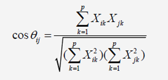 用两个向量oi和oj之间的余弦作为相似系数,取值范围为[0,1]。当两个向量正交时,取值为0,表示两个对象完全不相似。