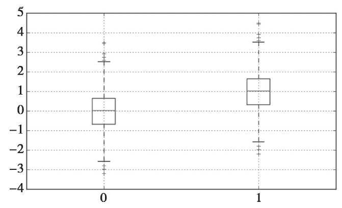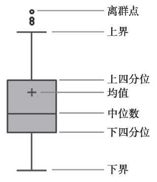 箱型图依据实际数据绘制,没有对数据作任何限制性要求(如服从某种特定的分布形式),它只是真实直观地表现数据分布的本来面貌;另一方面,箱型图判断异常值的标准以四分位数和四分位距为基础,四分位数具有一定的鲁棒性:多达25%的数据可以变得任意远而不会很大地扰动四分位数,所以异常值不能对这个标准施加影响。由此可见,箱型图识别异常值的结果比较客观,在识别异常值方面有一定的优越性,如图所示。