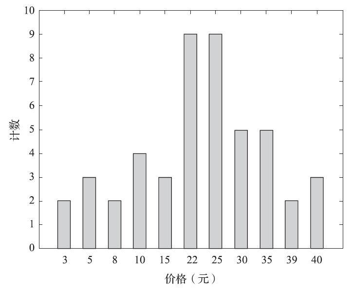 图 价格的等宽直方图——每个桶代表一个价格区间/频率对