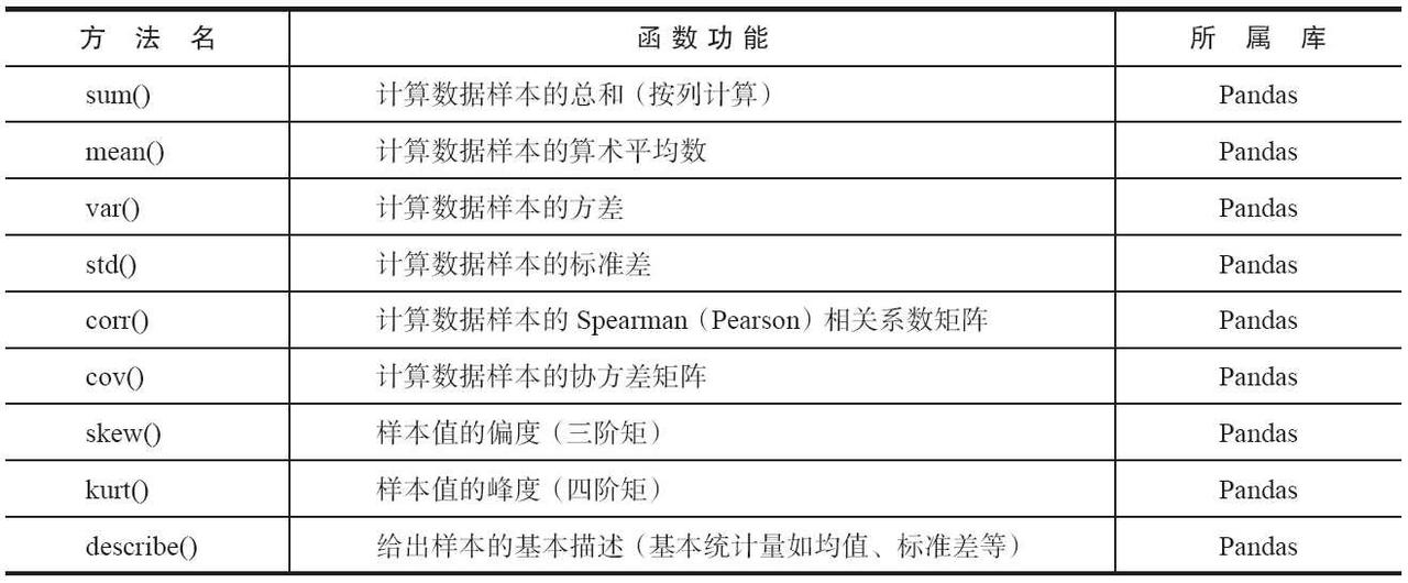 表 Python主要数据预处理函数