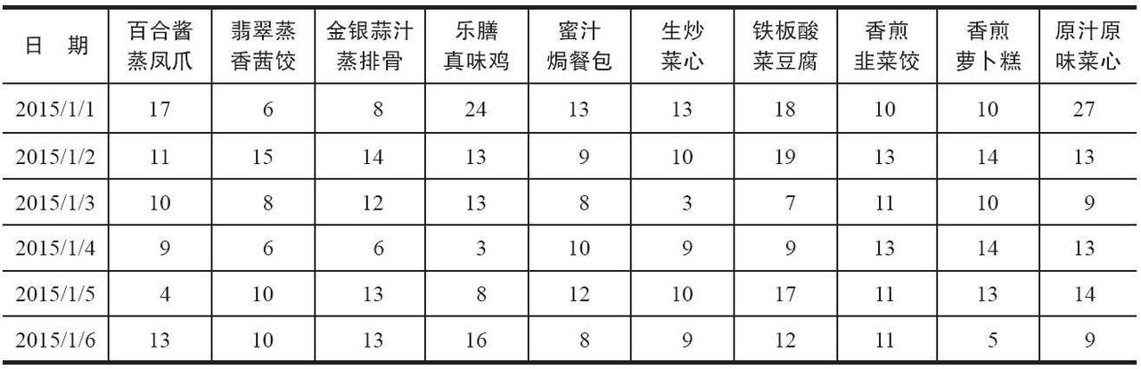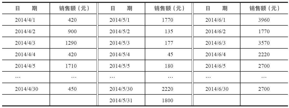 表 餐饮日销额数据示例