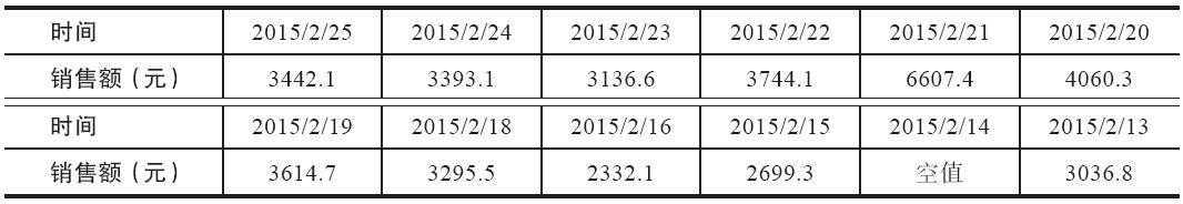 在餐饮系统中的销量额数据可能出现缺失值和异常值,如表中数据所示。