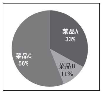 图是菜品A、B、C在某段时间的销售量的分布图。