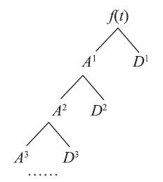 式(4-20)中,A是近似信号,为低频部分;D是细节信号,为高频部分,此时信号的频带分布见图4-6。