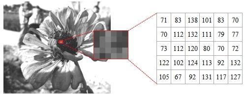 首先了解一下图像,图像其实是由若干像素组成,每一个像素都有明确的位置和被分配的颜色值,因此一张图像也就构成了一个像素矩阵。例如,一张灰度图片的像素块,如图所示。