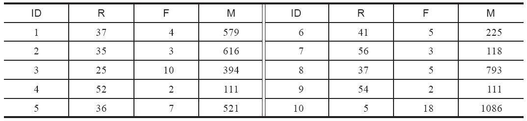 部分餐饮客户的消费行为特征数据如表5所示。根据这些数据将客户分成不同客户群,并评价这些客户群的价值。