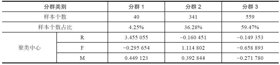 采用K-Means聚类算法,设定聚类个数k为3,最大迭代次数为500次,距离函数取欧氏距离,如代码清单5-4所示。