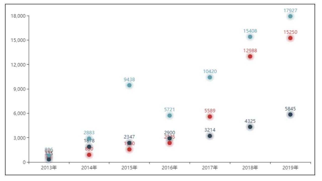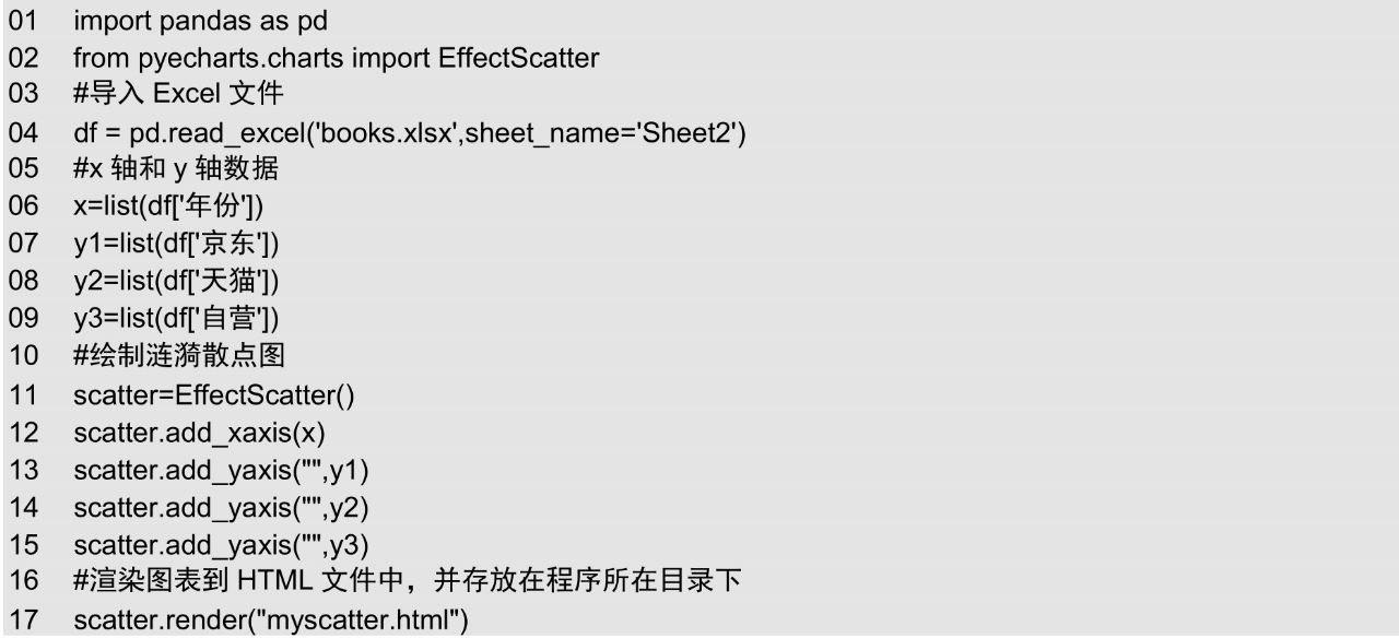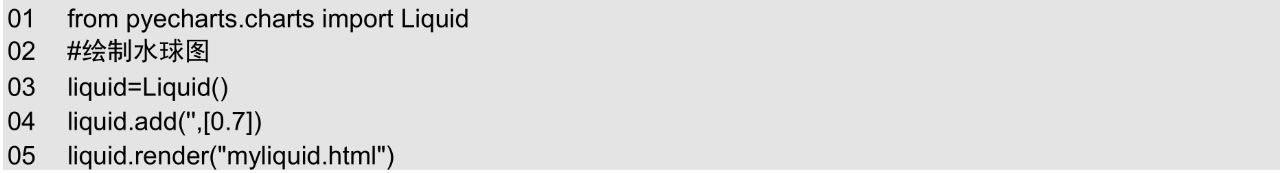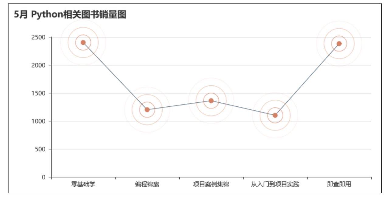 绘制水球图主要使用Liquid模块的add()方法实现。下面绘制一个简单的涟漪特效散点图,程序代码如下:
