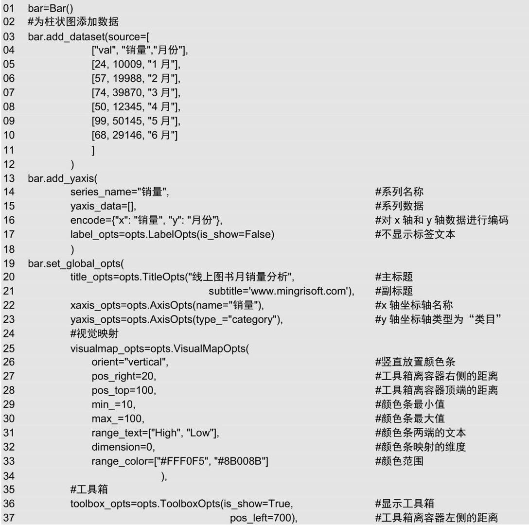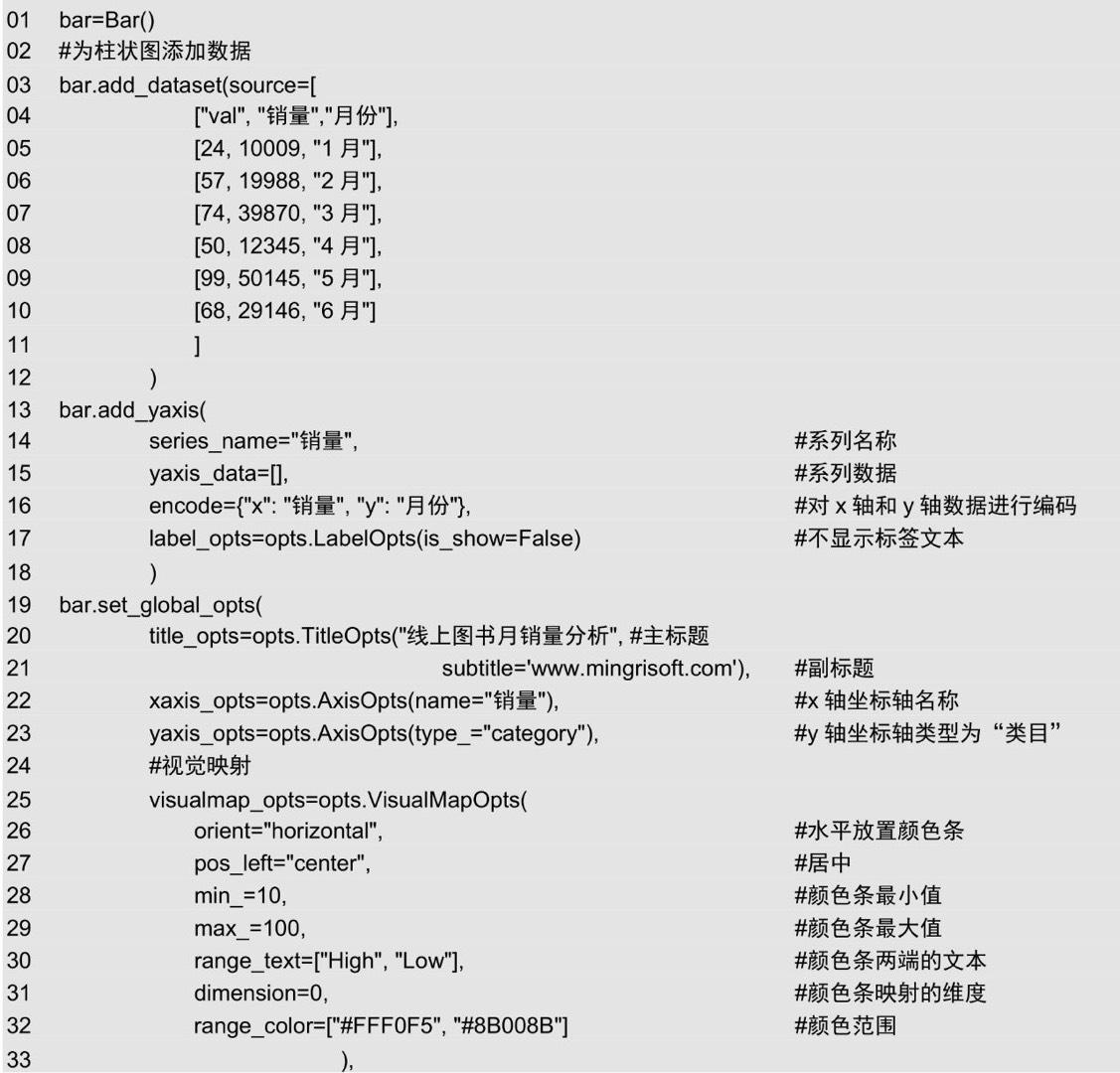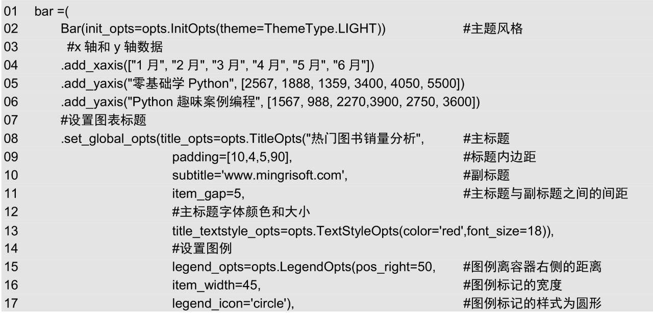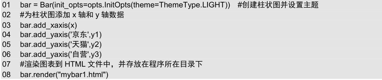 (1)从pyecharts.charts库中导入Bar模块,代码如下: