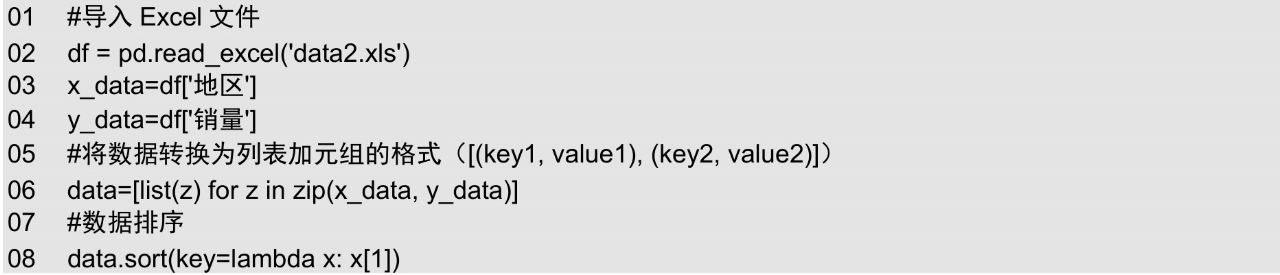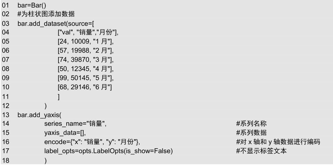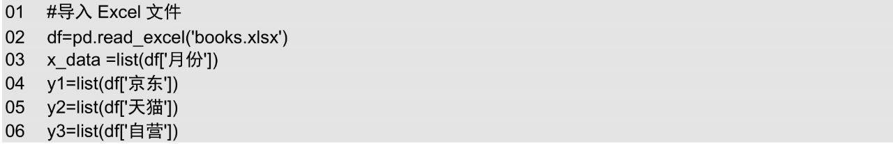 (3)定义x轴和y轴数据,其中x轴为月份,y轴为销量。代码如下:
