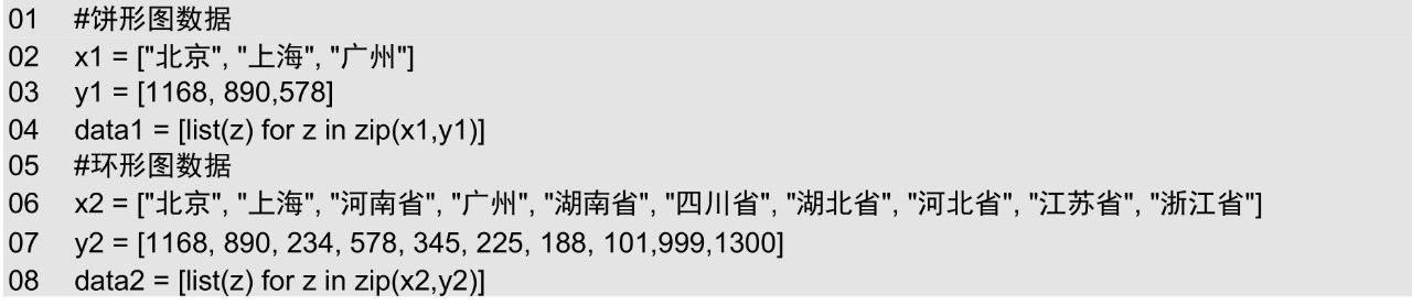 绘制饼形图与环形图组合图表的一个关键点是创建两个饼形图,并设置不同的半径(radius参数),具体实现步骤如下所示。