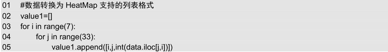 (3)将数据转换为HeatMap支持的列表格式,代码如下: