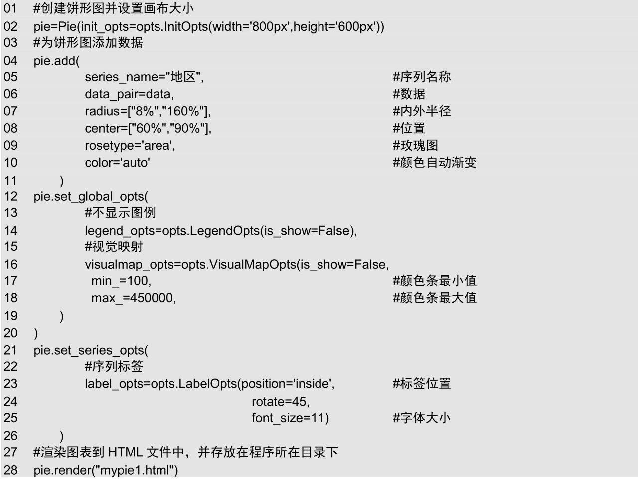 下面使用Pie模块绘制南丁格尔玫瑰图,效果如图25所示。