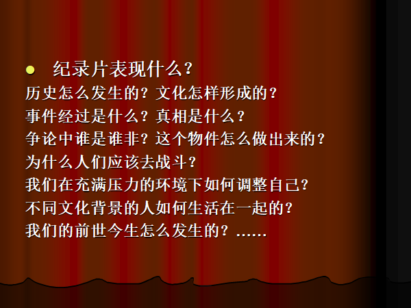 1、纪录片表现什么?