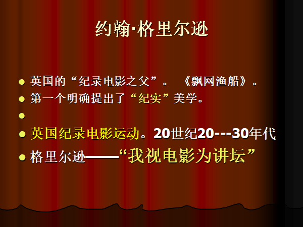 观摩:了解格里尔逊和相关创作生平。(视频由两个部分组成,后一个人物介绍为格里尔逊)