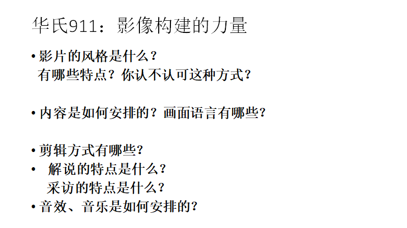 2 对比《America Remembers》和《华氏911》,它们的风格各有什么不同? 《华氏911》如何构建自己的影像的?