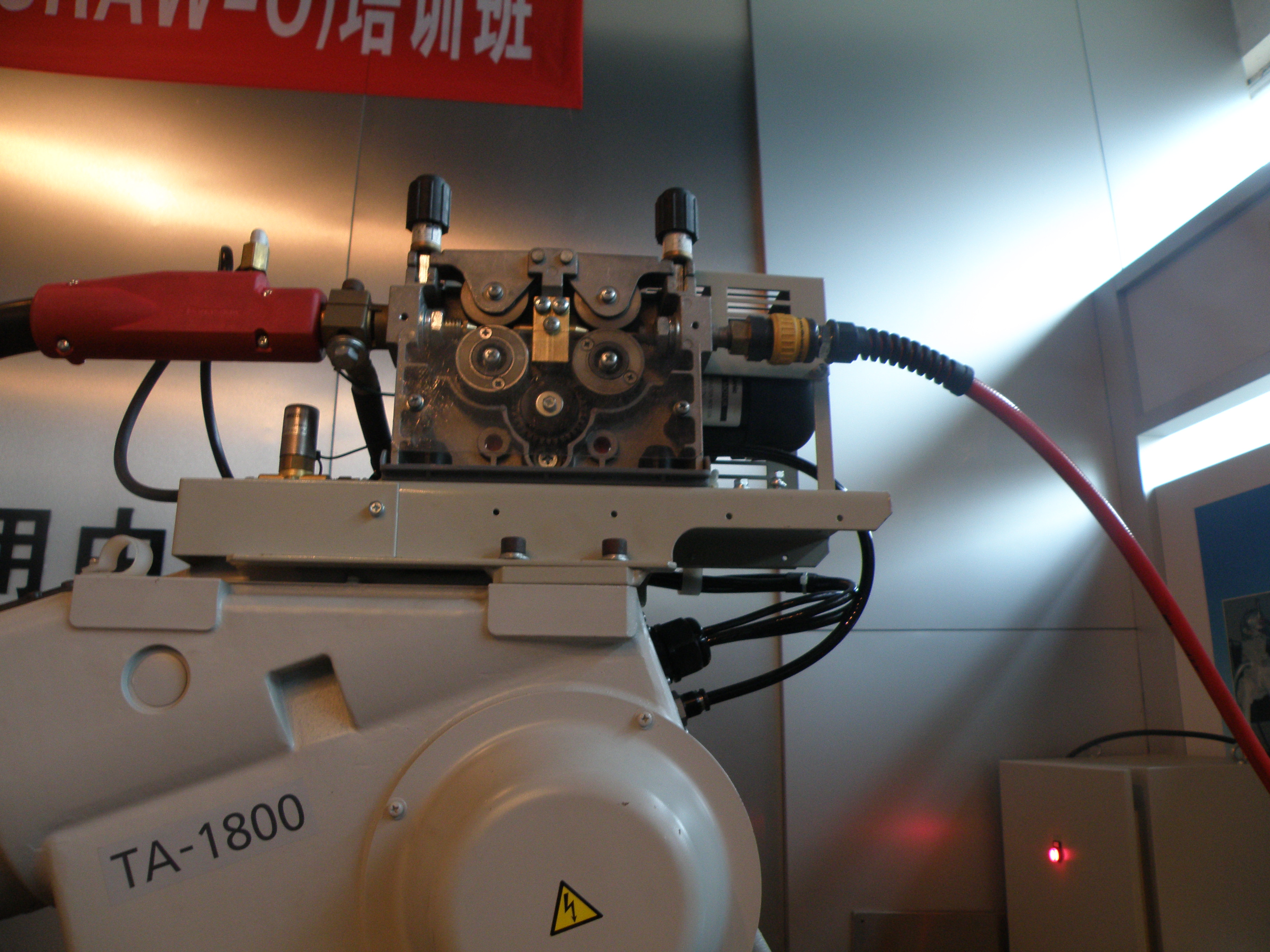 机器人焊接过程中要求送丝顺畅,送丝速度稳定,焊丝无弯折及其它变形。两轮送丝机和四轮送丝机在机器人焊接系统中比较常用。四轮送丝机送丝力量更大,送丝距离更远,速度更稳定。校直机构工作不正常可能导致焊丝易弯折,送丝阻力大。送丝压紧轮压紧力不够易导致焊丝打滑,送丝速度不稳定。压紧力太大,则可能导致焊丝被压扁,送丝阻力大,导电嘴易磨损等。送丝软管及导电嘴内积累的铜屑等杂物过多,易导致接触不良、送丝不顺。