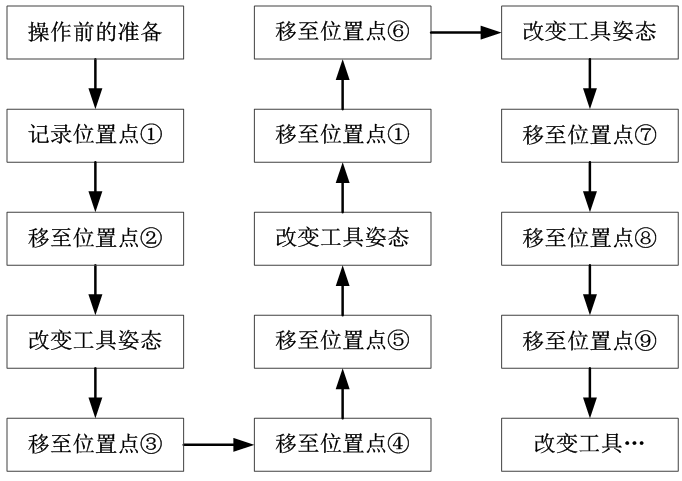 手动操作机器人沿位置点①→②→③→④→⑤→①→⑥→⑦
