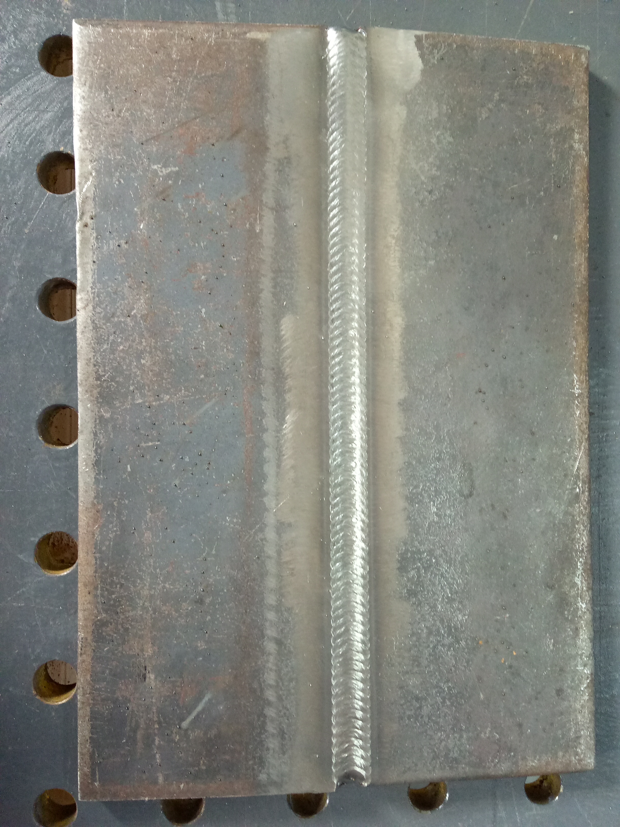 检查送丝系统,供气系统工况,在确认焊接电源的工作状态和机器人工作环境安全后,将模式切换开关打到运行(Auto)上即可运行在示教模式(Teach)下编辑好的程序,对试件进行焊接加工,完成中厚板对接焊缝的机器人自动焊接。完成后的试件如下图。