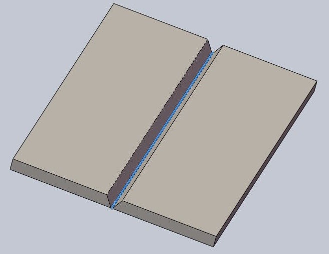 中厚板对接平焊需要开60°左右的坡口,分打底焊、填充焊、盖面焊三层,每层焊接都需要设置成直线摆动模式MOVELW。需要在直线焊缝轨迹的前端设置2个振幅点WAVEP,设置好摆动模式、频率和停留时间,摆动幅度可在拾取振幅点后修改。装配精度及每道焊缝焊前清理对焊接质量有较大影响。